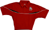 Dry Excel Elite Performance Pique, polyester knit. Tri-color design with piping and inserts. Three button placket.